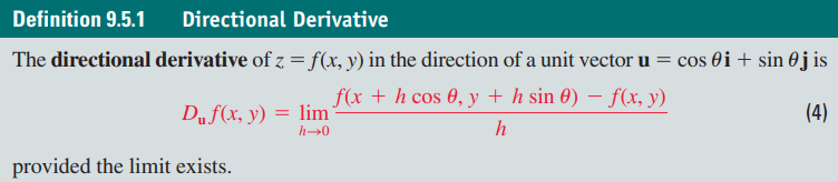 이것을 방향도함수(Directional Derivative)라 부르며 다음과 같이 정의됩니다.