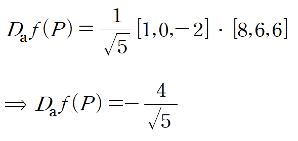 따라서 P점에서 a방향으로의 방향도함수는 다음과 같습니다.