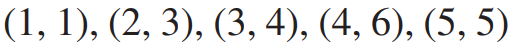 (예제) 주어진 다섯 개의 데이터에 대해 최소제곱법을 수행하여 선형회귀직선을 구하여라