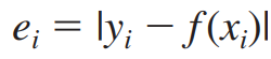 ei 는 yi 에서 선형함수의 함숫값 f(xi) 을 뺀 것의 절댓값으로 정의됩니다.