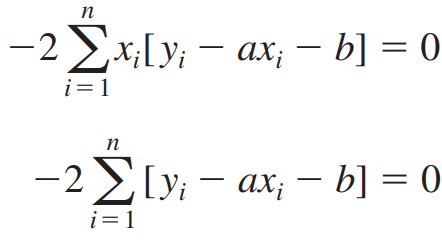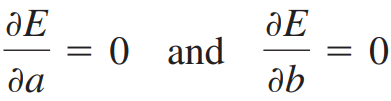 최소제곱합이 최소가 되는 지점은 a와 b에 대한 E의 편미분계수가 모두 0이 되는 지점이어야 합니다.