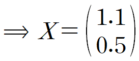 Y, A, X를 다음과 같이 설정할 때 위 식은 간단한 행렬방정식(Matrix equation)으로 변합니다.