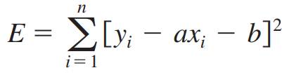 이 최소제곱합 E가 최소가 되도록 하는 직선 y = ax + b 를 구해봅시다.