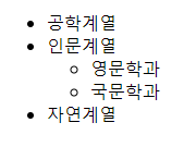 <ul>과 </ul> 내부에 들어갈 각 항목들은 <li> </li> 태그를 사용하여 표시한다.