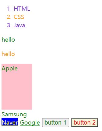 2. 특정 Tag에 적용하고자 할 때는 Tag이름을 사용 (h1태그에 적용하려면 h1{스타일} 형식을 사용)