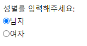 <input type="radio" name="gender" value="m" checked>남자<br>