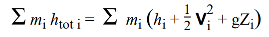 열에너지 출입이 없고 검사체적이 해준 일이 없습니다. 또한 우변에서 me = 0 이고 h_tot = h 입니다.