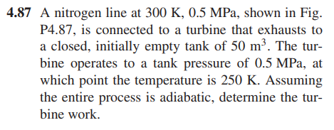 터빈을 지난 기체가 탱크로 유입될 때 터빈의 Work 을 구하는 문제입니다.