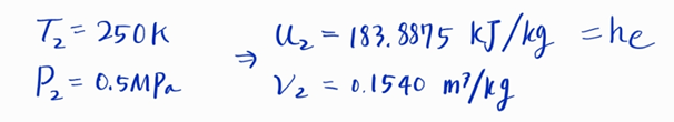 유입이 끝난 지점의 내부에너지 u2와 그 때의 비체적 v2는 다음과 같습니다.
