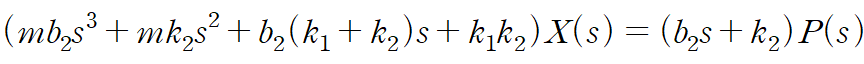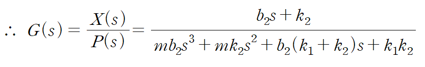 (예제 2) 운동방정식을 구하고 전달함수 G(s) = X(s)/P(s) 를 구하여라