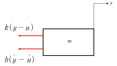 2. 상대변위 개념 : 스프링, 댐퍼 요소는 운동방향의 반대로 작용합니다.이때 u또한 스프링, 댐퍼 요소에 연결되어 있기 때문에 영향을 줍니다. 이것을 단순히 상대변위와 같은 관점에서 바라본다면 스프링이 늘어난 변위를 y-u로 생각할 수 있습니다.