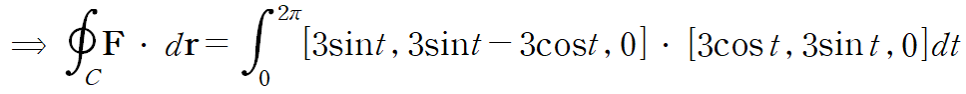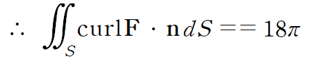 (예제 2) 스토크스 정리를 사용해 curl F의 S로의 면적분을 계산하여라
