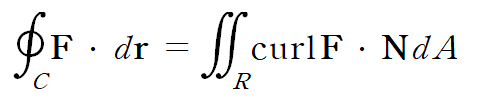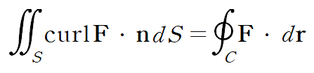 스토크스 정리에 의해 curl F의 면적분은 폐곡선 C에 대한 선적분으로 계산할 수 있습니다.