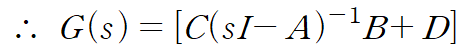 앞서 정리한 state equation과 output equation으로부터 전달함수 G(s)를 유도할 수 있습니다.