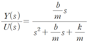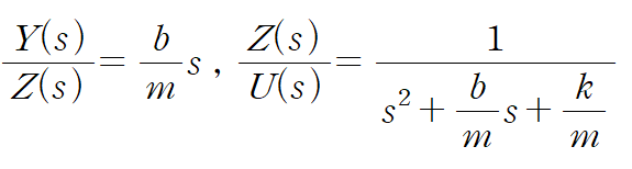 두 식에 라플라스 변환을 취하고 X(s)를 소거하면 전달함수가 유도됩니다.
