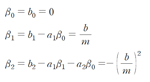 우변에서 첫 항은 bn으로 고정되고 a는 1부터 n까지 올리고 b는 β0까지 내린다고 생각하면 쉽습니다.