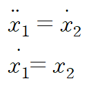 또한 우변에 미분항이 없어야 하므로 x1`에도 x2를 대입합니다.