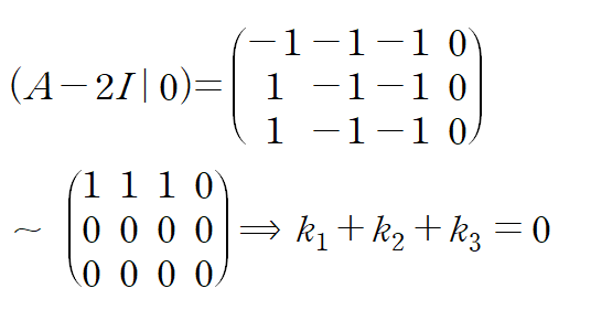 고윳값 2에 해당하는 고유벡터는 중복도의 수와 동일한 두 개입니다.