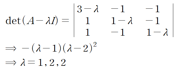 중복도가 3인 고윳값에 대응하는 고유벡터가 1개인 예시입니다.