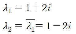 - complex eigenvalue λ = α + βi 의 켤레복소수 또한 고윳값입니다.