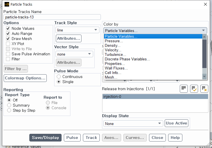 이후 Save/Display를 누르면 Particle Tracking이 완료된다.