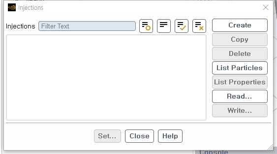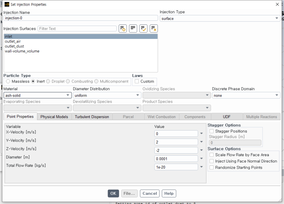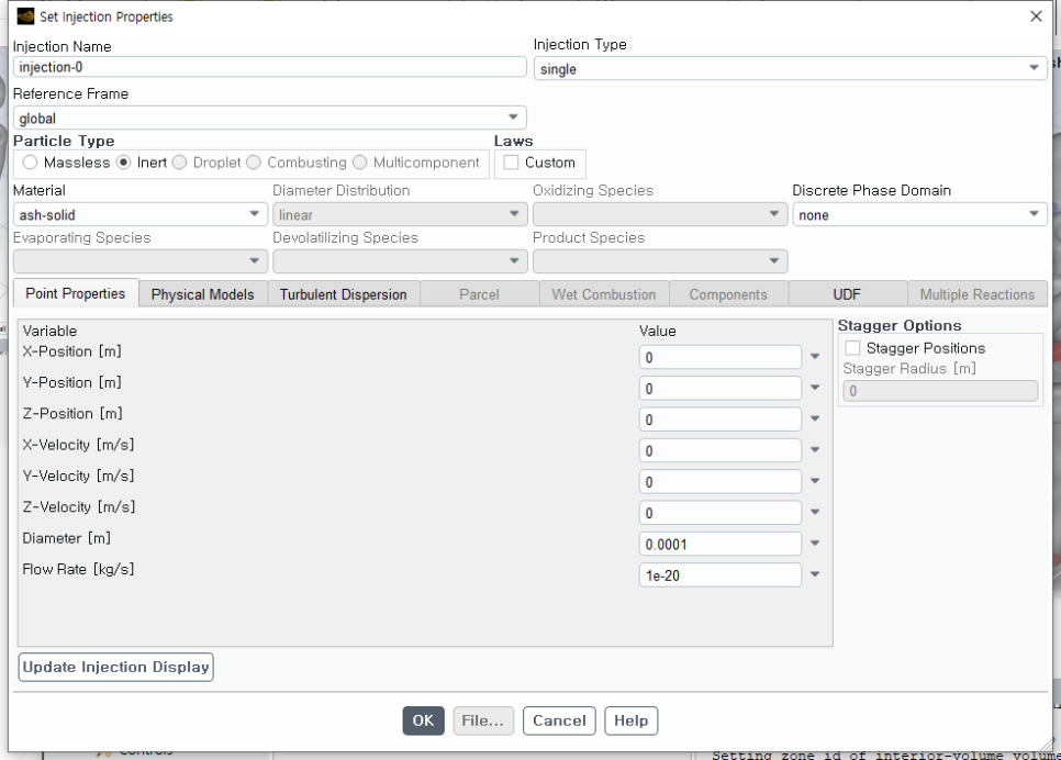 Setup - Models - Discrete Phase - Injections 더블 클릭