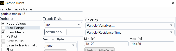 : Results 탭에서 Graphics - Particle Tracks - New 클릭 후 설정.