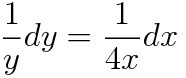 엥 왜 dy와 dx가 분리가 되었지? 하는 사람에게 간단히 말하자면 y는 y끼리 모으고 (dy 포함), x는 x끼리 모아서(물론 dx포함) 정리한 것이다. 이렇게 정리가 되는 상미분 방정식들을 변수분리형 상미분 방정식이라고 한다. 이 친구들은 양변에 적분을 취해주면 각 변수에 대한 어떤 함수꼴로 쉽게 정리가 된다. 즉 미분소(dy 나 dx)가 없는 형태의 식을 도출할 수 있다. 간단한 예를 보자