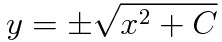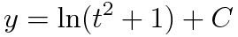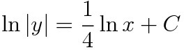 부정적분을 풀면 위와 같은 형태가 된다. 이때 양변에 나오는 적분상수는 한쪽으로 몰아서 정리해도 무방하다. 그 편이 훨씬 깔끔. 여기까지 구해도 되고 양함수꼴의 해를 구해야 한다면, y=f(x)꼴로 정리를 해주면 된다. 위 경우에는 다음과 같이 정리할 수 있다.
