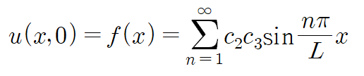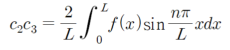 푸리에 사인 급수 형태이므로 계수 c2c3은 다음과 같이 표현할 수 있습니다.