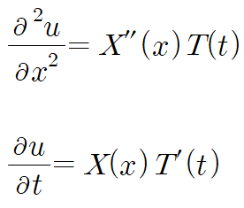 u를 x와 t의 함수라 가정한다면 다음과 같이 변수분리 가정을 할 수 있습니다.
