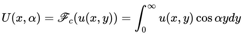 또한 y의 초기조건이 도함수 형태로 주어져 있으니 푸리에 코사인 변환을 사용합니다.