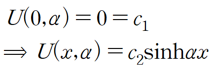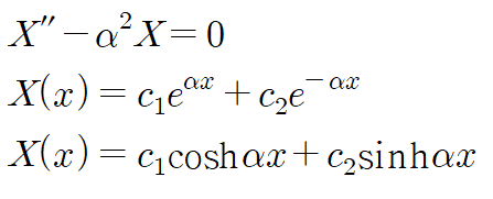 이때 x에 대한 경계조건을 고려하면 두 번째 쌍곡선함수(hyperbolic function)를 사용해 표현한 형태가 더 유용하다는 것을 알 수 있습니다.