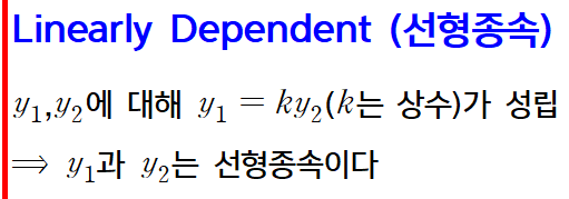즉, 어떤 해가 다른 해의 상수배 꼴로 표현되면 두 해는 선형종속입니다