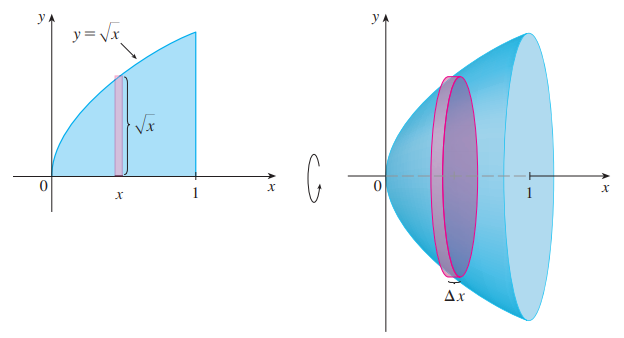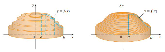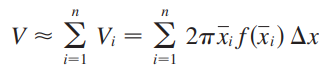 회전체의 부피 V는 속이 빈 얇은 원통의 부피의 합으로 표현할 수 있습니다.