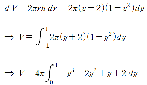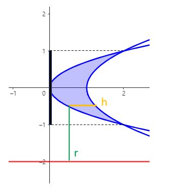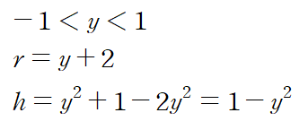 y의 범위는 [-1, 1]이고 r은 y-(-2) = y+2 , h는 y^2+1 - 2y^2입니다.