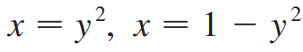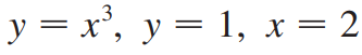 (예제 5) 아래 곡선들로 둘러싸인 영역을 x축에 대해 한 바퀴 회전시킨 회전체의 부피를 구하여라