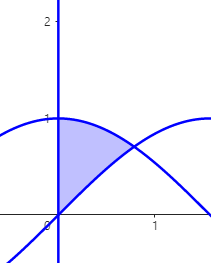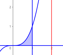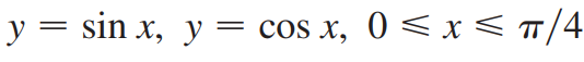(예제 1) 아래 곡선들로 둘러싸인 영역을 x축에 대해 한 바퀴 회전시킨 회전체의 부피를 구하여라
