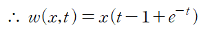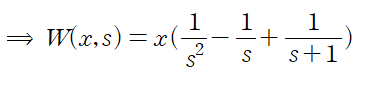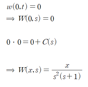 <2> 이상을 정리하면 아래와 같이 s와 x로 이루어진 방정식을 얻는다. 초기조건 w(x,0)=0 에 의해 항이 정리된다.