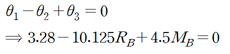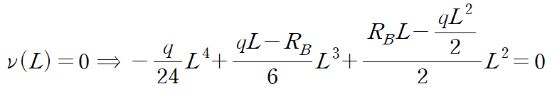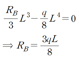집중하중 RB에 의한 처짐의 부호만 반대이므로 아래 적합방정식을 얻습니다.
