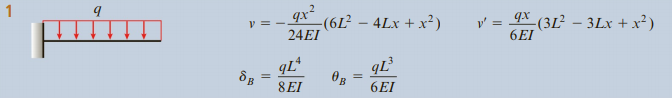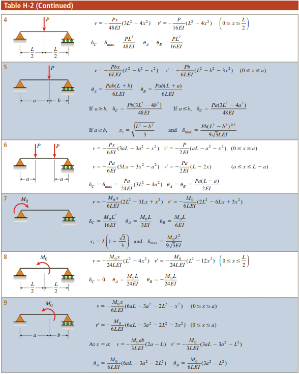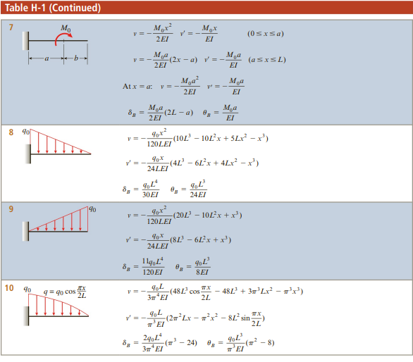 처짐 테이블은 아래와 같이 주어집니다.(출처 : mechanics of material, Barry J. Goodno & James M. Gere, 9th edition)
