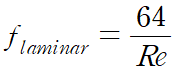 이것은 포아실리 법칙으로부터 유도되며 Re는 레이놀즈 수입니다.