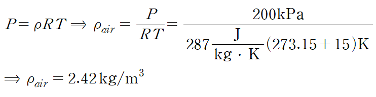 (예제 1) 공기의 압력이 200 kPa(절대압력)이고 온도가 15도 일 때,