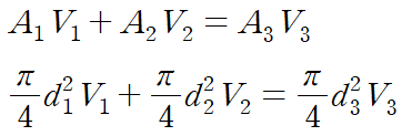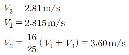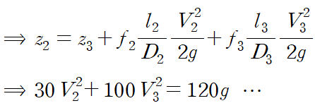 이것을 연립하여 각 관에서 유체의 속도를 구할 수 있습니다.