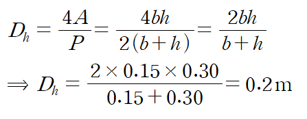 (예제 4) 표면의 거칠기가 ε = 0.015mm 인 직사각형 덕트에 공기가 0.068 m^3/s의 유량으로 유동중일 때 이 12m 덕트에서 발생하는 수두손실을 구하여라.