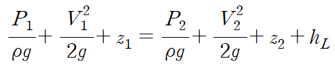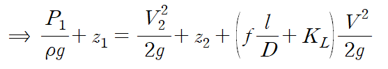 수두손실은 주손실과 부손실로 나뉘는데, 관에 의한 주손실(major loss)가loss)이 우변의 첫 번째 항이고 노즐에 의한 부손실(minor loss)이 우변의 두 번째 항입니다.