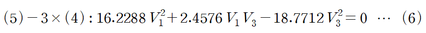 이 이차방정식을 V1에 대하여 풀면 V1 = 1.002 V3이라는 관계를 얻습니다.