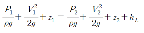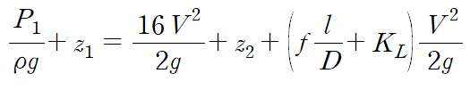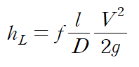 그러나 위 식은 포아실리 법칙을 통한 원형관의 수두손실입니다.