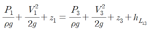 1 지점에서 3 지점으로 가는 유동은 두 개의 관을 지나니, 두 개의 주손실 항이 발생합니다.