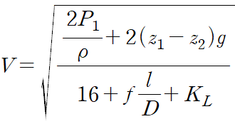 정리해 둔 에너지 방정식에서는 V를 제외한 모든 값이 주어져 있으니, 에너지 방정식으로부터 V를 구할 수 있겠군요